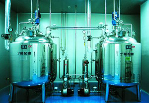 ⑤罐体有液位计(无触点超声波、静压变送式或玻璃管式)、空气呼吸器、灭菌蒸汽口、温度计(数显式或表盘式)、CIP万向洗罐器、灯孔视镜、若干进出液口、人孔。