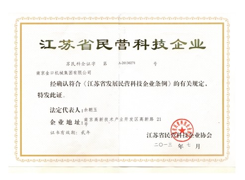 江苏省民营科技企业证书